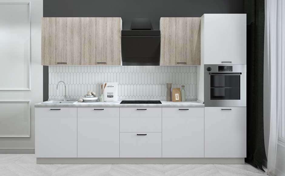 Обращаем Ваше внимание, что цена за погонный метр включает в себя: фасады выбранной категории, влагостойкую столешницу HPL (Германия) высокой прочности, корпуса ЛДСП Egger (Германия) с кромкой ABS, ящики с доводчиками , петли с доводчиками, ручки, алюминиевый поддон в стол под мойку, сушка (Италия), цоколь Volpato (Италия). Из расчета в размере 2400 мм.
